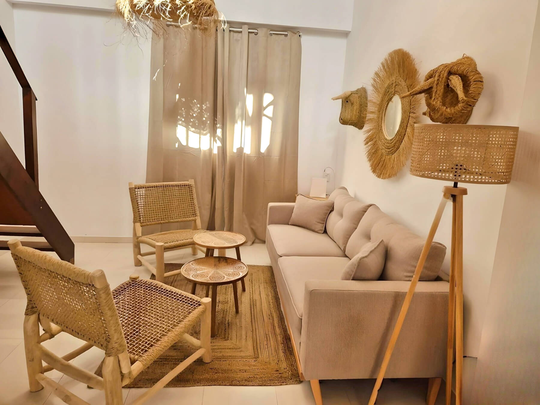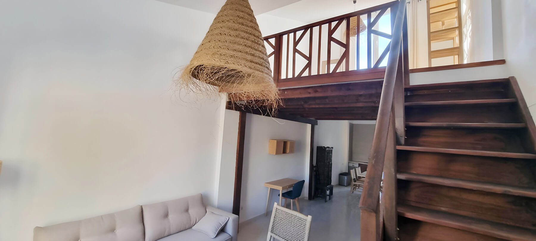 La vivienda cuenta con un amplio salón perfectamente decorado, equipado con un cómodo sofá-cama ideal para recibir invitados. Además, dispone de un altillo con dormitorio, una solución funcional y elegante que maximiza el espacio habitable.